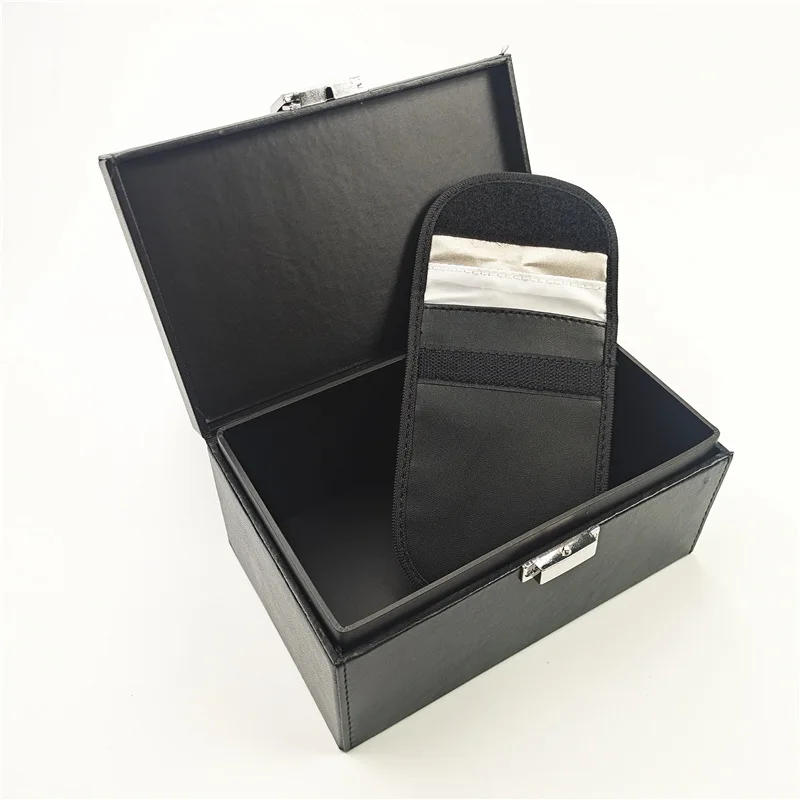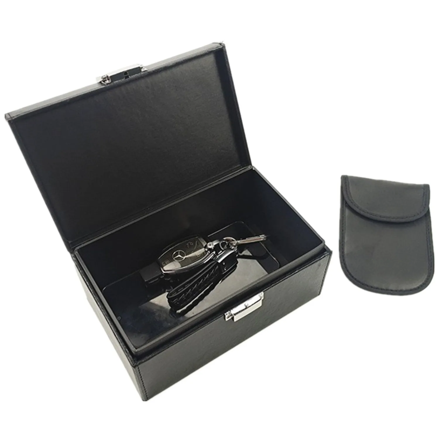 1 Shielding Box + 1 PU Leather Shielding Key Case Vehicle Key Signals Household Faraday Box Signals YS-2309 Rectangle